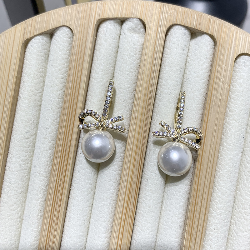 Micro-pave Zircon Bow Pearl Earrings For Women
