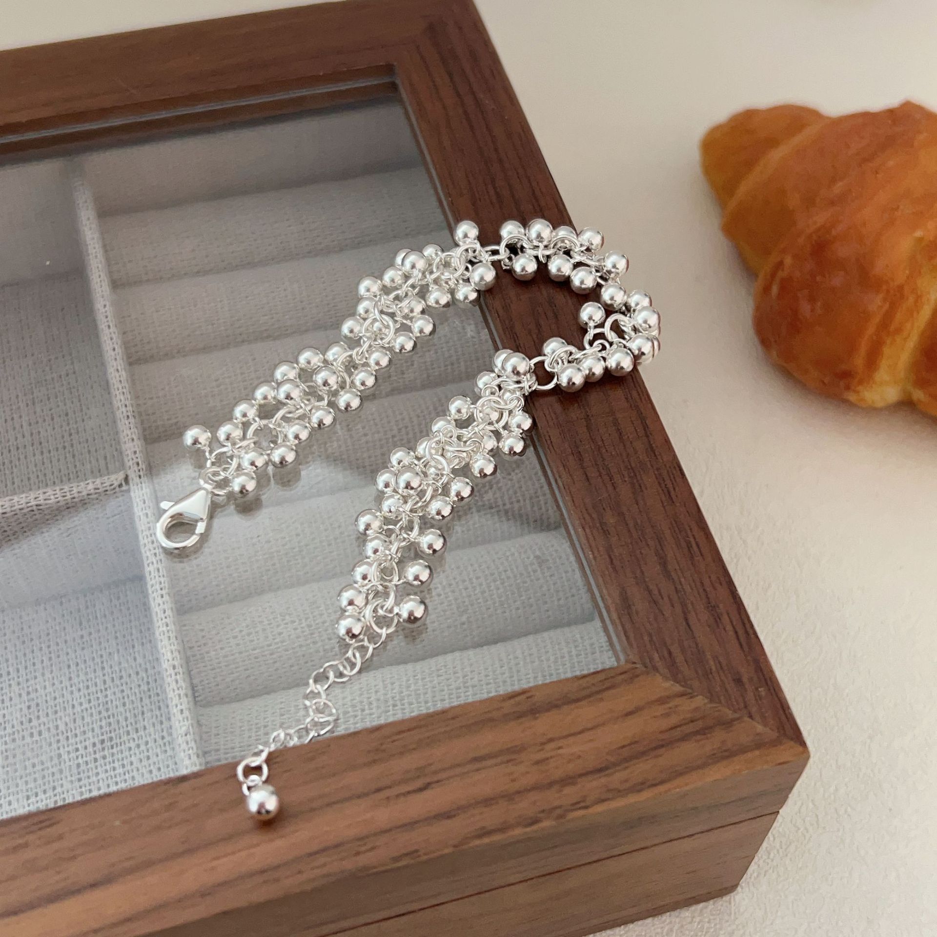 S925 Sterling Silver Grape Cluster Smooth Round Bead Bracelet For Women